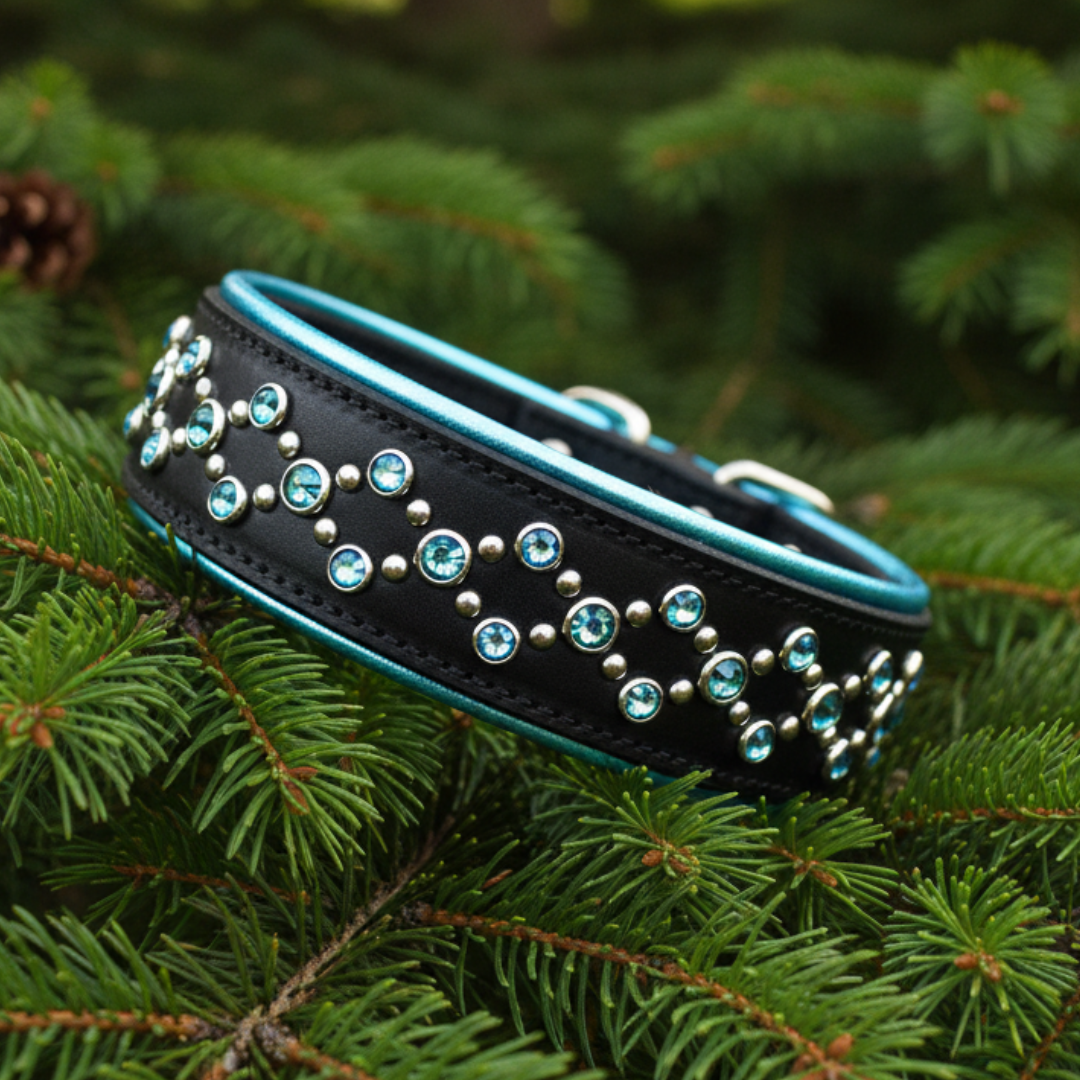 Starlight, 1.5" Wide Custom Leather Dog Collar