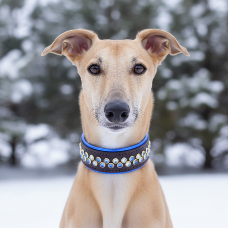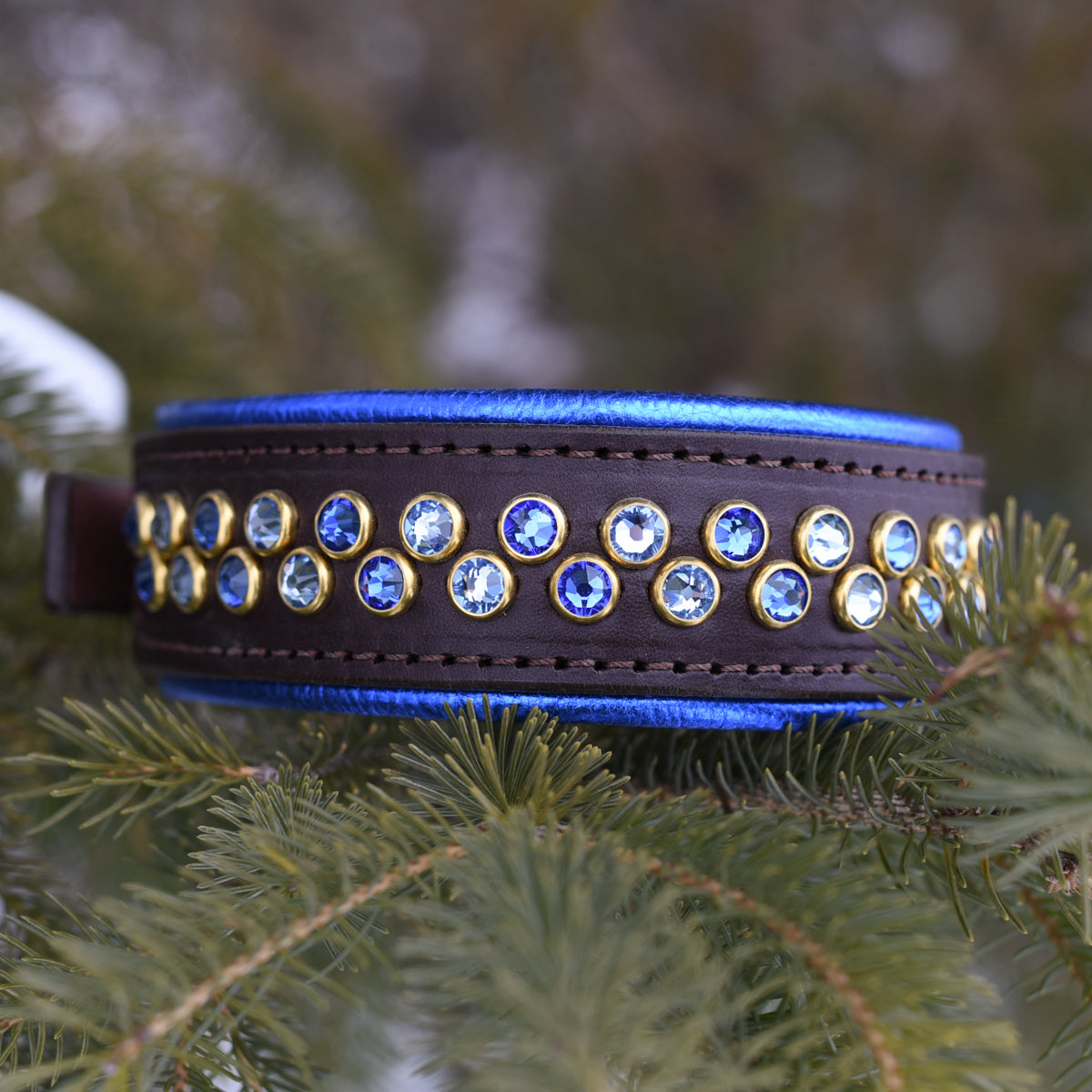 Every collar on this page is built to order by our team of leather artisans in Ontario. Choose your design, then make it yours: leather colour, crystal colour, hardware, padding. Not sure where to start? Send us an email or DM — we’ll walk you through it.