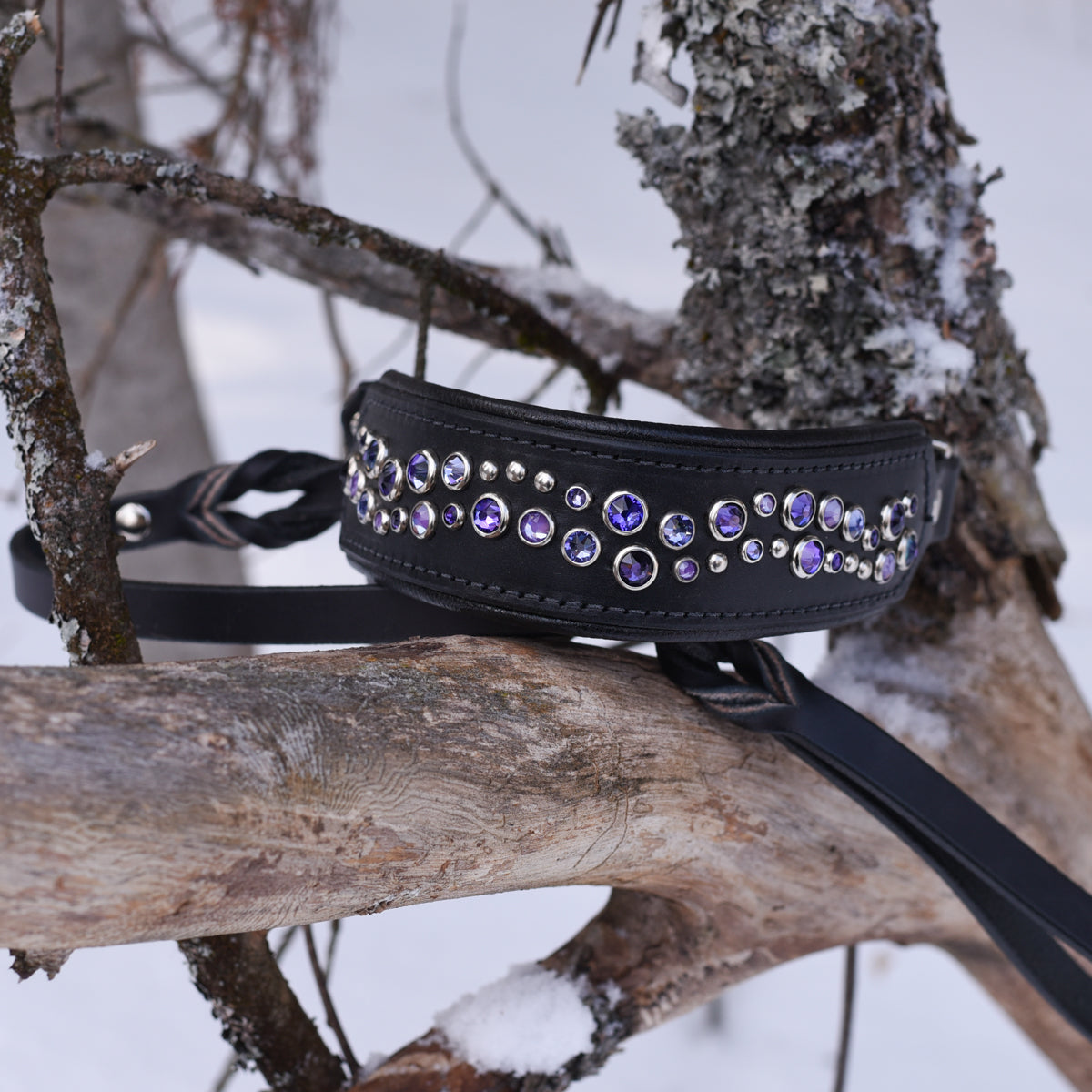 Every collar on this page has already been handcrafted by our team in Ontario and is ready to ship. Same leather, same crystals, same craftsmanship as our custom line — just without the wait. See something you love? It ships within days.