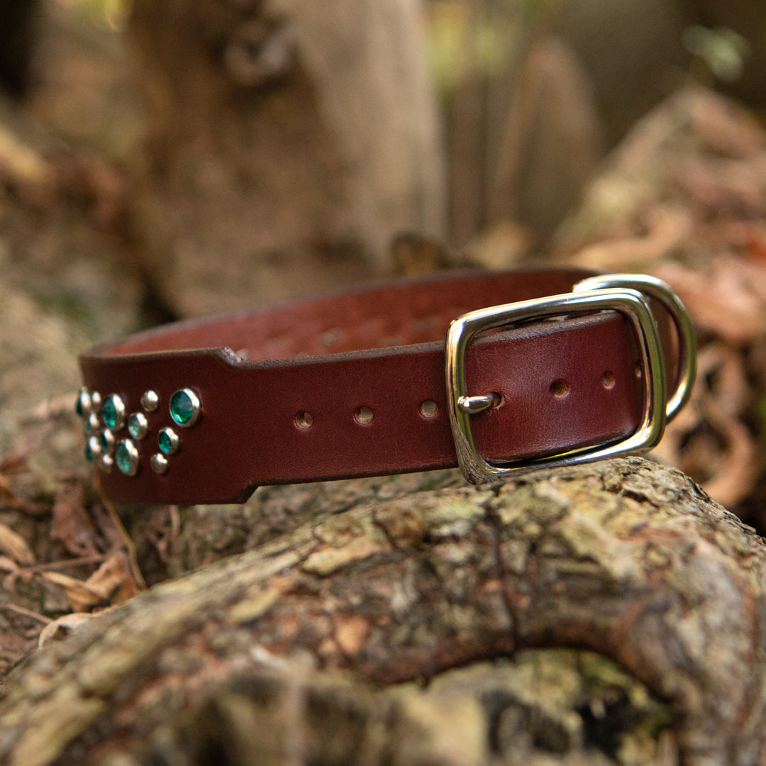 Starlight 1.5" wide Medium Brown Leather Dog Collar