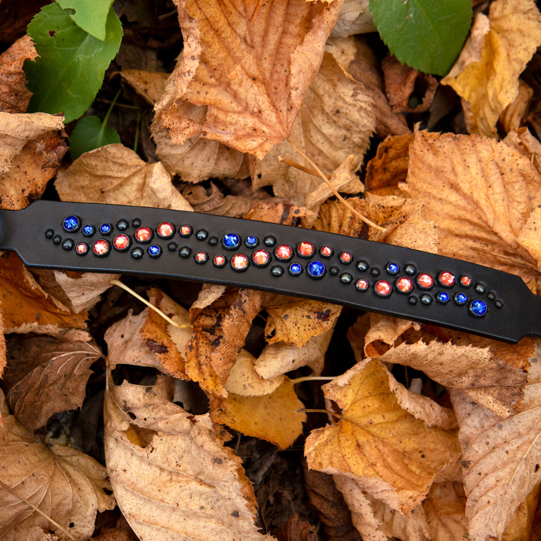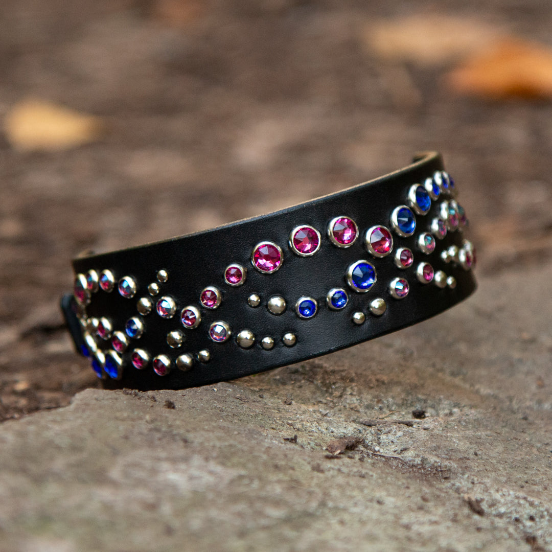 Nessie, 1.25" wide Blue Crystals on Black Leather