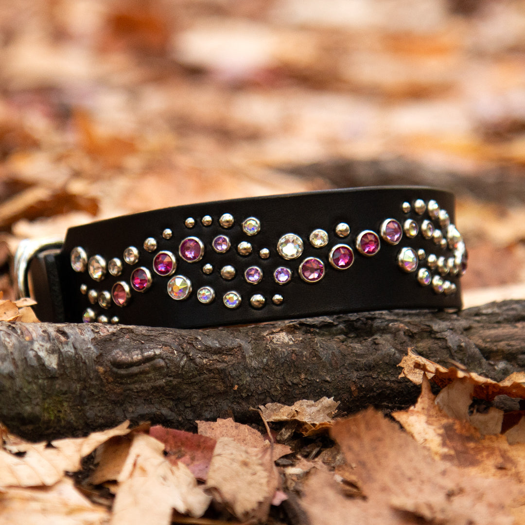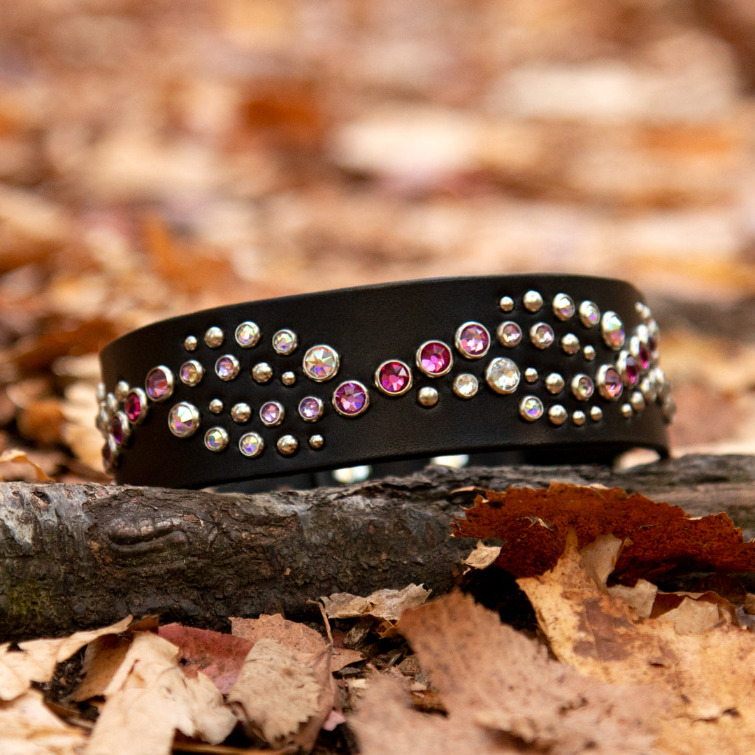 Little Aurora, 1.5" Wide Pink & Black Leather Dog Collar