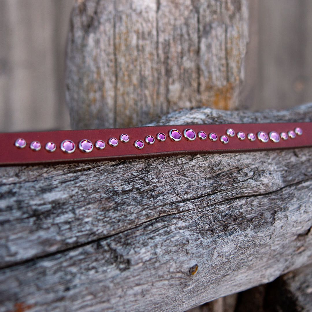 Micro Mardi Gras, 1.5" Wide Medium Brown Leather Dog Collar, size 12"-15"