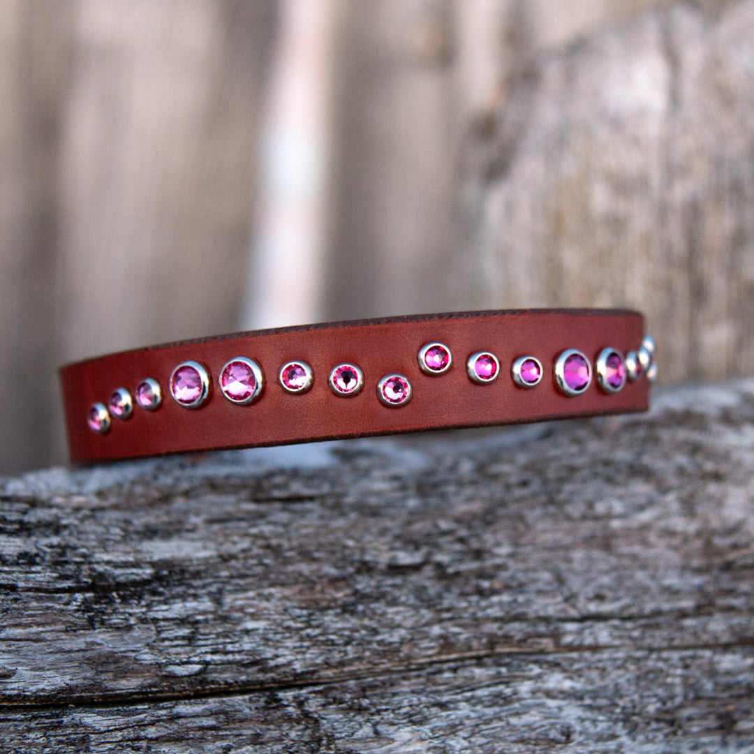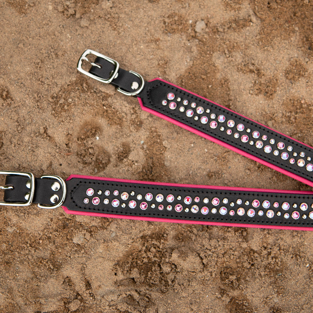 Loch, 1.5" wide Pink and Black Leather Dog Collar, size 12"-15"