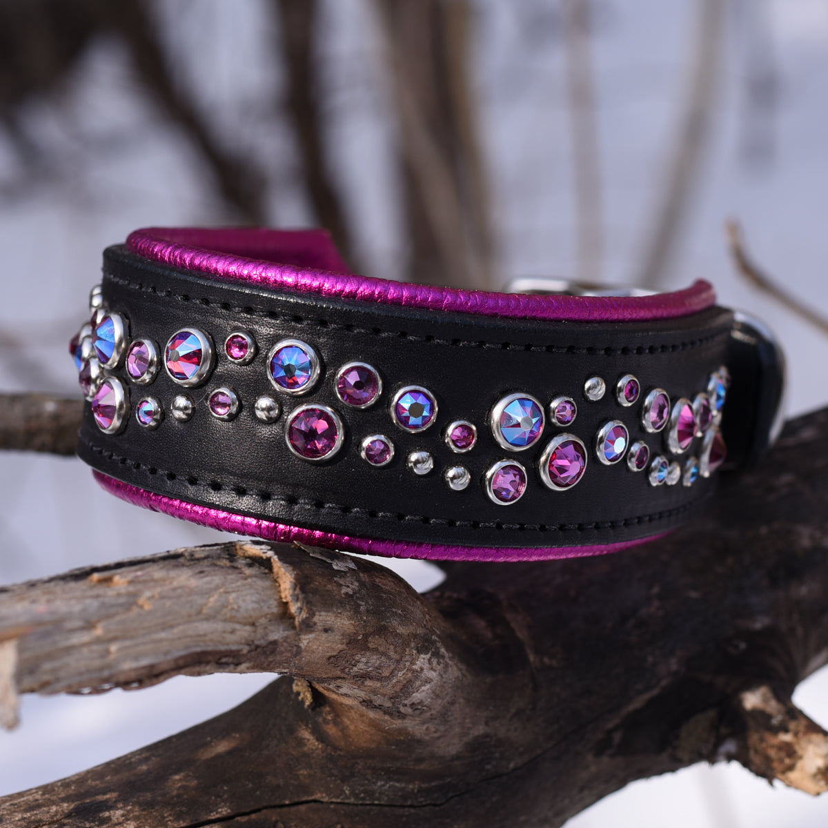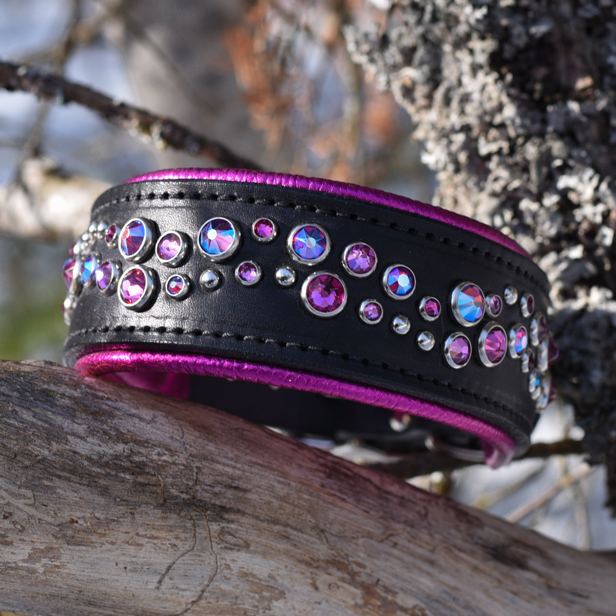 Every collar on this page has already been handcrafted by our team in Ontario and is ready to ship. Same leather, same crystals, same craftsmanship as our custom line — just without the wait. See something you love? It ships within days.