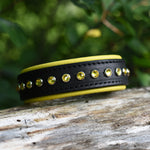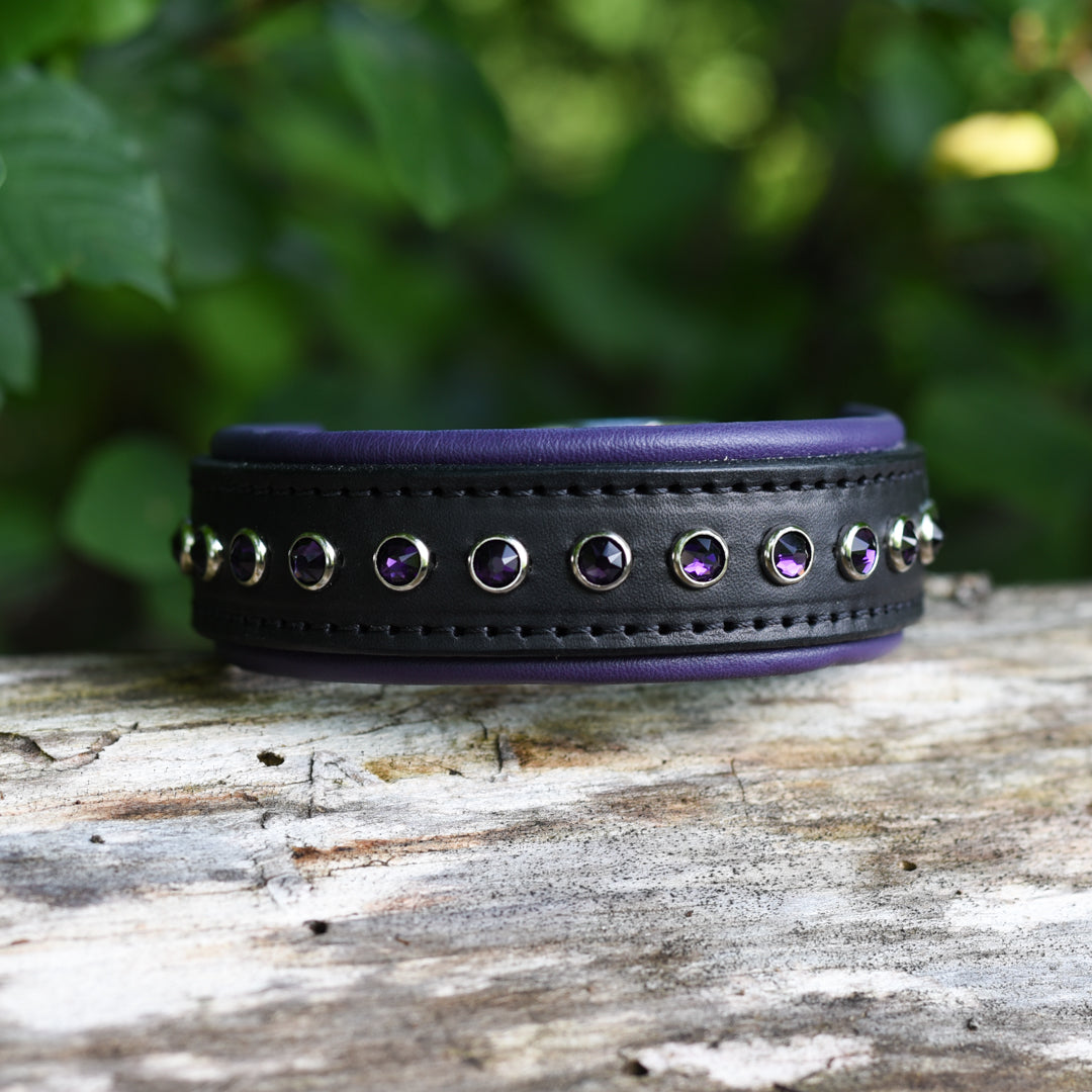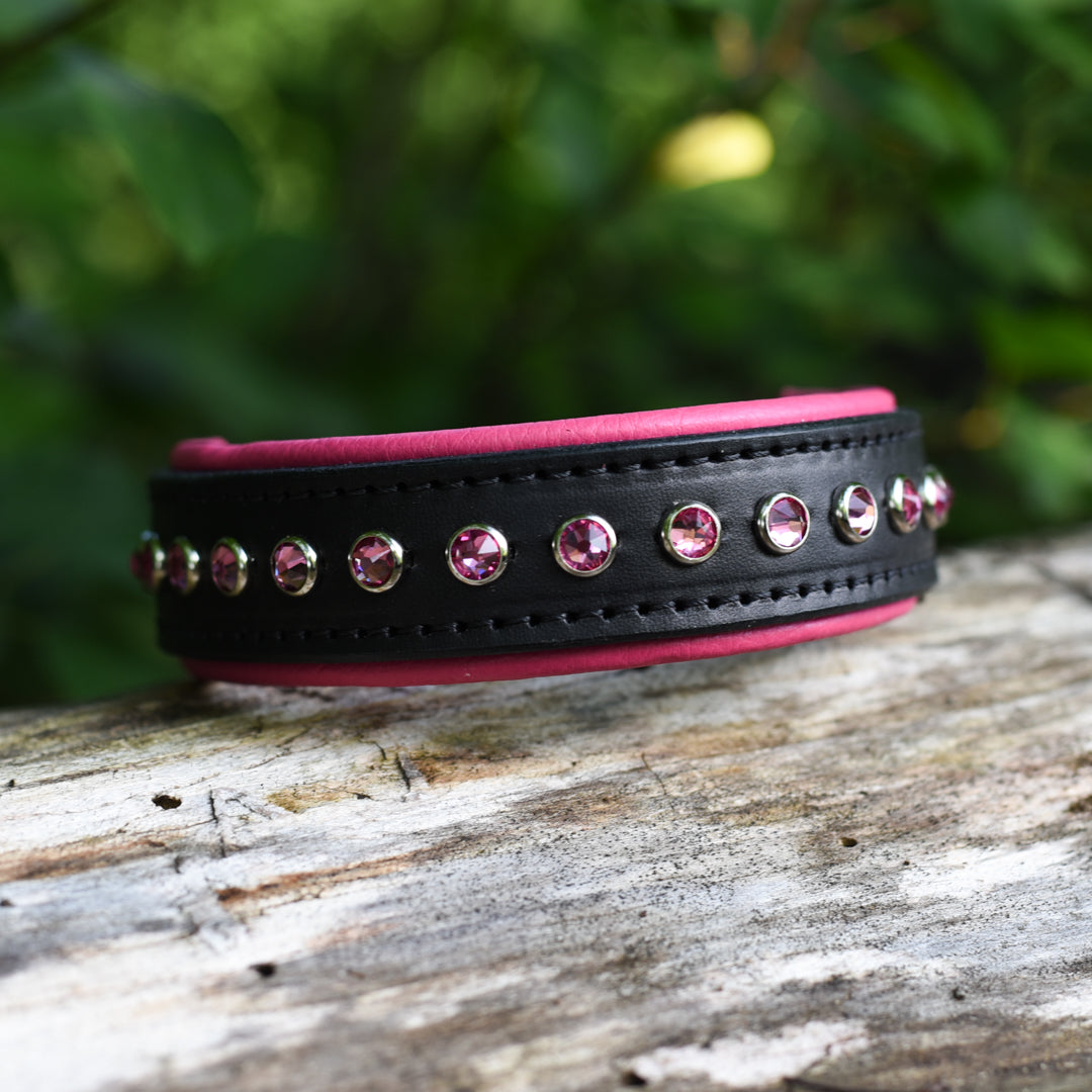 The Charm padded leather dog collar is a must-have accessory for pet owners seeking comfort and style for their dogs. This 1.25" wide collar, made from premium black leather with a soft padded interior, ensures a secure and comfortable fit. Featuring eye-catching Austrian, it enhances your dog's appearance with a luxurious touch. Ideal for daily use or special events, this leather dog collar blends practicality with a striking design.