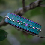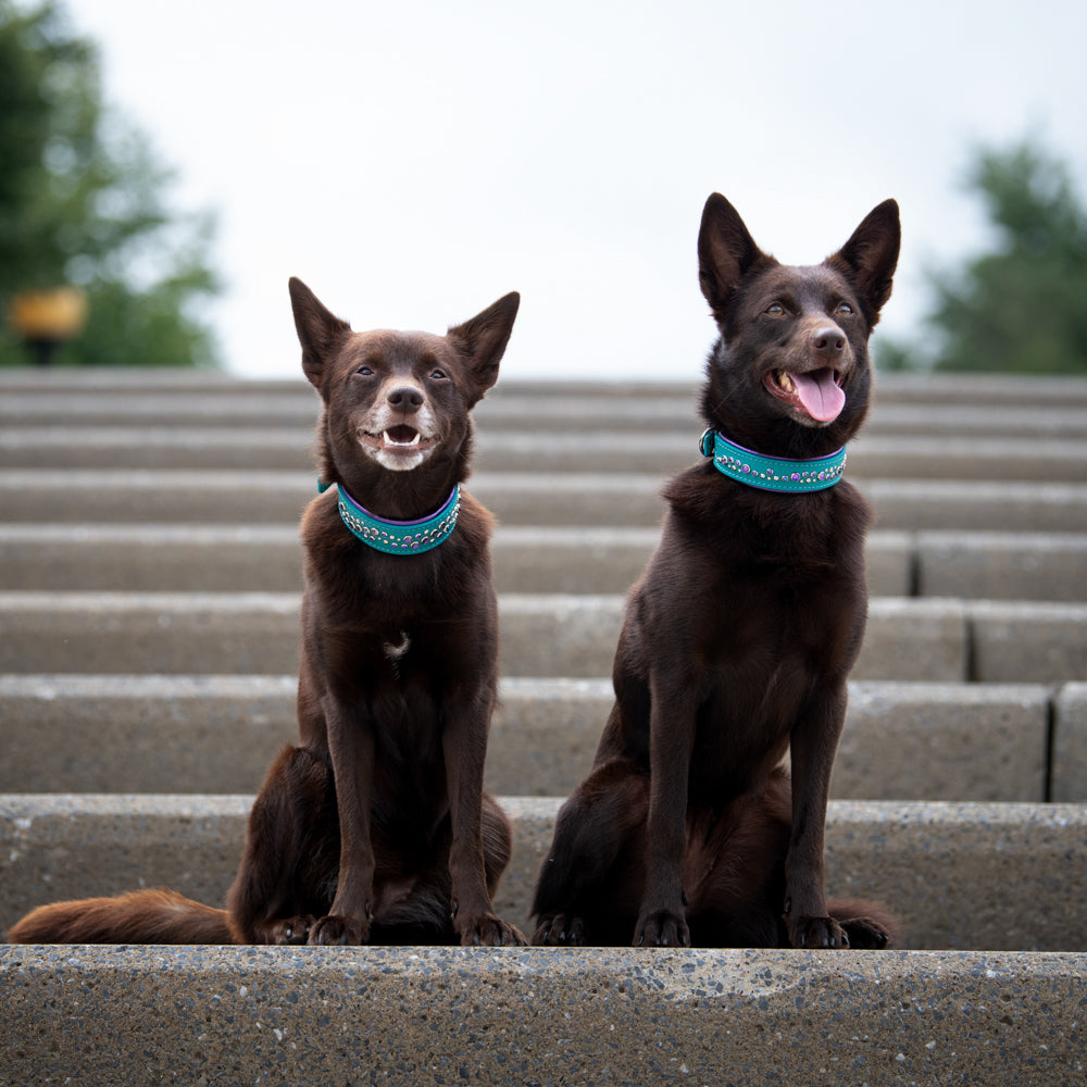 I love my dog’s new Wave, Tempting Teal collar. The workmanship, the leather quality, the rich teal color of the bottom leather and beautiful Crystal color. Quality throughout!