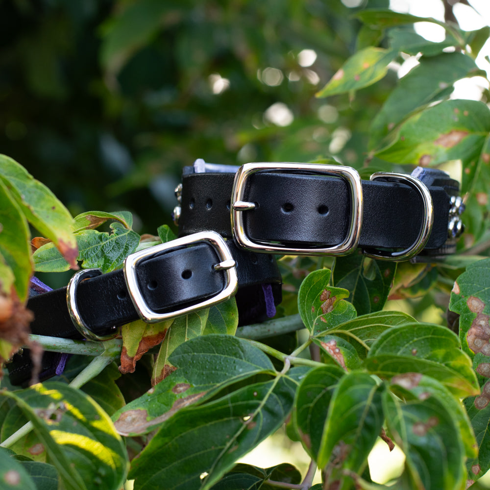 Crafted from full grain English Bridle Leather, this Leather Dog Collar is both durable and comfortable for your dog.  The padded inner lining ensures a comfortable fit, no matter the activity.