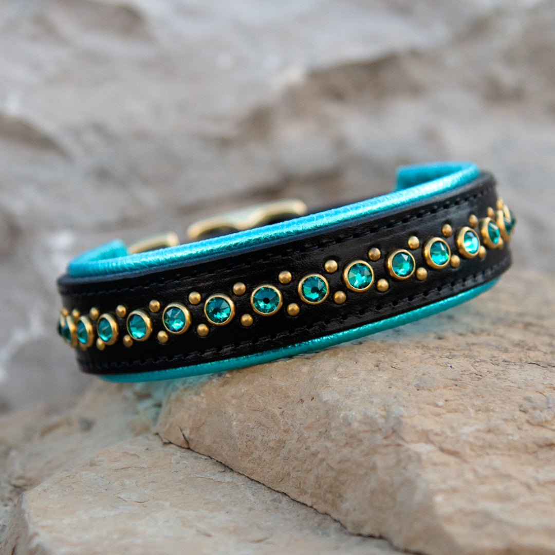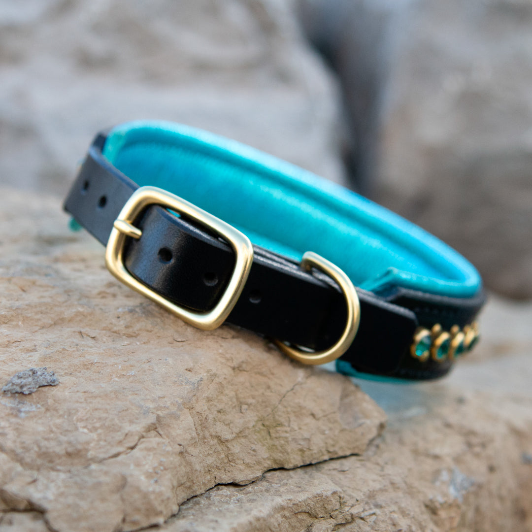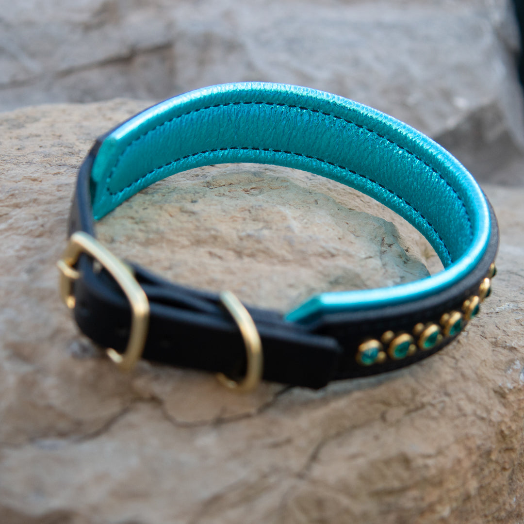 Introducing the Silas, a 1.25" wide padded Custom Leather Dog Collar.  Choose your leather, hardware and crystal colours.  We will bring your vision to life.