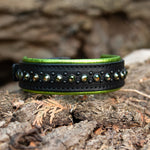 Silas Leather Dog Collar, 1.25" wide Iridescent Green on Black Leather