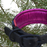 • Colour Palette: This Ready To Wear Leather Dog Collar is adorned with orange and pink Austrian crystals paired with Black hardware and Fuchsia Metallic padding.