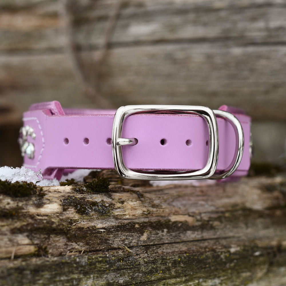 Each collar is handmade in Canada with the same attention to detail as our core collection—full-grain leather that breaks in beautifully, reinforced stitching, and solid nickel-plated brass hardware that complements the pink tones.