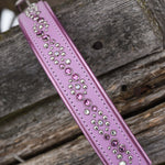 The Sweetheart is a limited edition 1.5" wide collar in soft pink leather with hand-set Austrian crystals in a romantic pattern you won't find anywhere else.