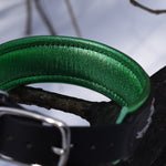 • Colour Palette: This Ready To Wear Leather Dog Collar is adorned with  Green Austrian crystals paired with Black hardware and Emerald Metallic padding.